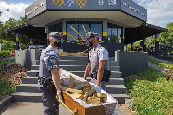 São Paulo – A Polícia Rodoviária de São Paulo apreendeu 119 tabletes de maconha em um caixão na Rodovia Raposo Tavares (SP-270), em Assis, interior do estado na manhã deste domingo (12/12).